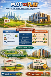 Real estate has always been one of the most reliable ways to build long-term wealth. However, one common dilemma most investors face is choosing between a plot and a flat. Each option comes with its own advantages, risks, and returns—especially in a fast-growing city like Hyderabad, where infrastructure and development are expanding rapidly.