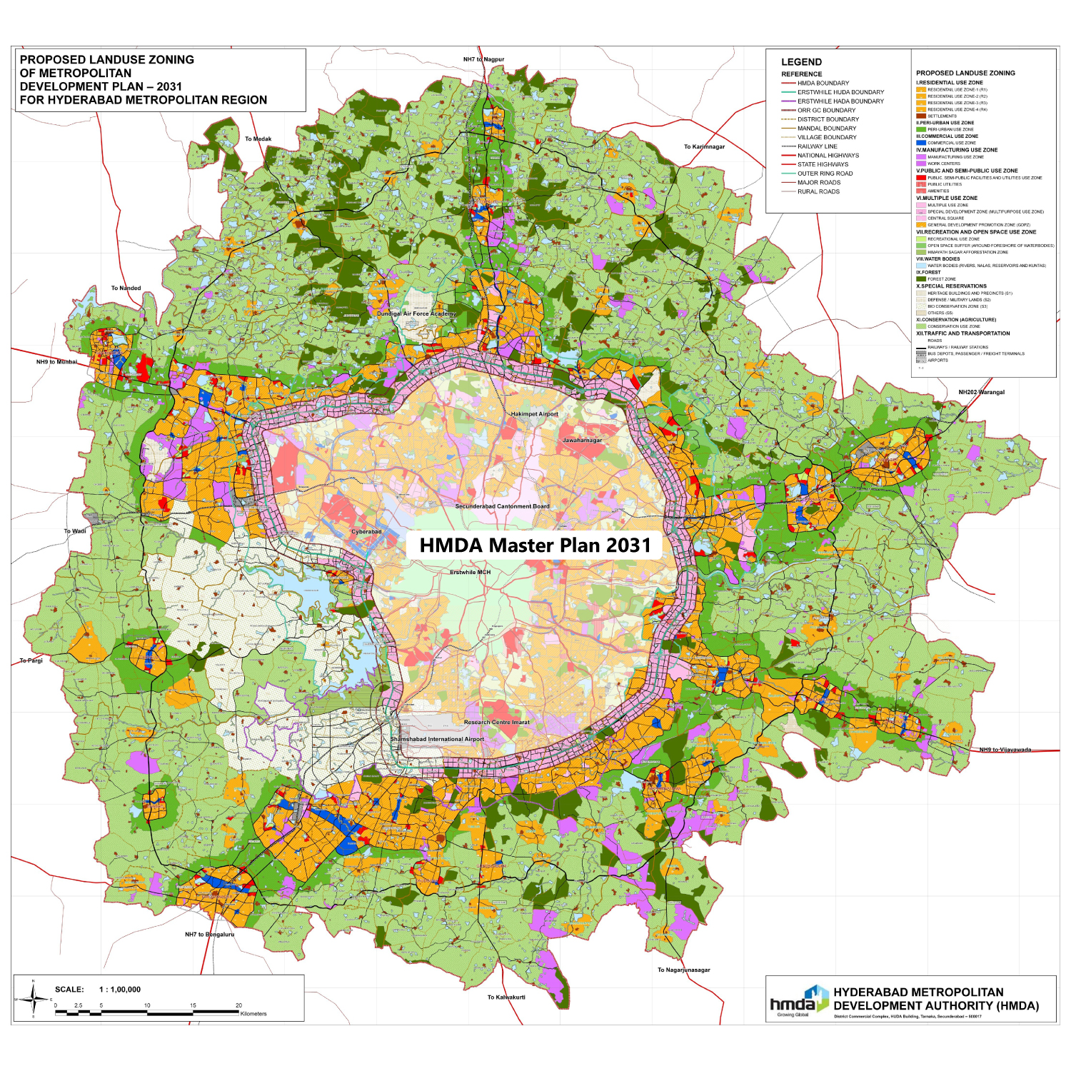The Master Plan includes detailed mandal-wise plans and maps for all areas under HMDA’s jurisdiction.