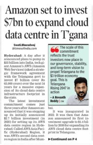 Amazon Commits $7 Billion to Expand Cloud Data Centres in Telangana — A Major Boost for India’s Tech Infrastructure