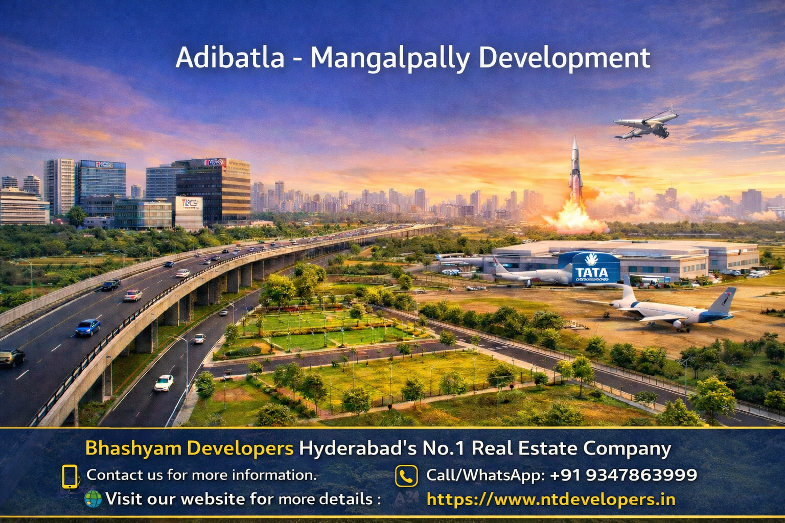 The Adibatla–Mangalpally corridor is witnessing rapid development due to expanding IT, Aerospace, and Infrastructure projects. This makes it one of the fastest-growing real estate zones in Hyderabad.